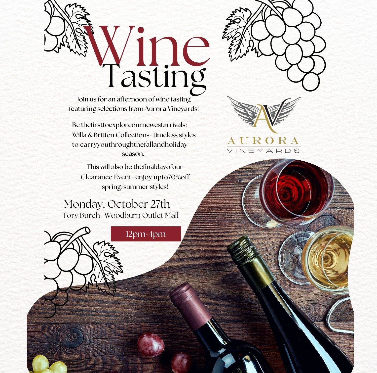 Find our team members at Tory Burch - in the Woodburn Outlet Mall - October 27th from 12pm - 4pm pouring some tastings! We are excited to partner with the team at Tory Burch and hope to see you there.